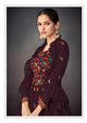 Exclusive Bachelorette Party Wear Latest Designer Stitched Kurti Set. Magenta Georgette Stones, Sequins, Resham Zari Thread Embroidered Short Kurti upto 42" Bust, Peach/Pink Georgette Stitched Ghagra Style Sequined Skirt. Magenta Georgette...